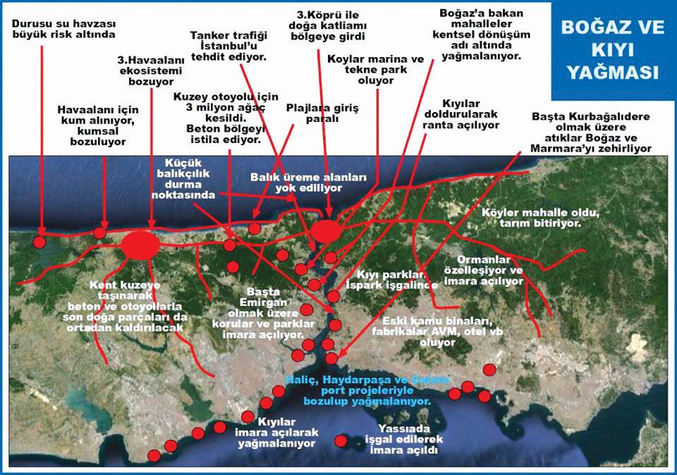 Boğaz ve Kıyı YağmasıTekne Park-Oto Park yapımlarıyla İstanbul Boğaz kıyılarının ve sahilinin gasp edilmesine ilişkin projeler, ilgili savunma ve dayanışma platformları tarafından, katılımcılara açıklandı.