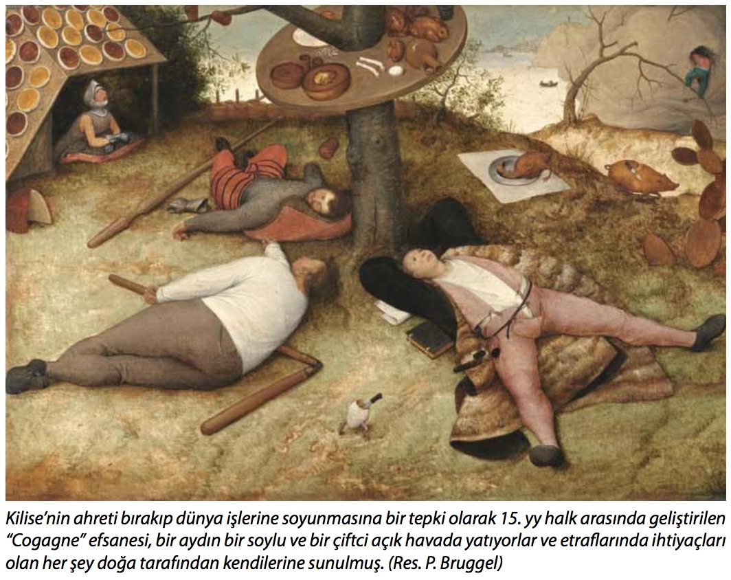 Başlangıçta insanoğlunun üretim araçları üzerinde özel mülkiyeti yoktu. Doğa ve ilkel üretim araçları bütün toplumun ortak malıyken zamanla fabrikaların, tarım çi iklerinin ve toplumsal üretim sonucunda ortaya çıkan muaz- zam servetin giderek doğanın kendisinin toplumun az sayıda ve hiç çalışmayan bir kesimine ait hale getirilmesinde kapitalist devlet aygıtlarının ve her türden dini kurumların rolleri belirleyici olmuştur. Din, hemen bütün çoğrafyalarda, toprak- ları ve atölyeleri zorbalıkla ve hile ile el- lerinden alınan, mülksüzleştirilen, emekçilerin karşısında toprak sahiplerinin ve kapitalistlerin yanında oldu. Fabrikalarda ve tarım işletmelerinde kapitalistler ve zengin toprak sahipleri için çalışmanın bir sömürü ilişkisi olarak değil Tanrı’nın ilahi yasaları gereğince mülksüzlerin ‘‘cezalı’’, mülk sahiplerinin ise tanrının bir ödülü olarak zengin olduklarını, Tanrı’nın yasaları gereğince bazılarının hep yoksul kalmak zorunda, bazılarının da hep zengin olma hakları bulunduğunu ve bu ilahi düzene karşı çıkmanınsa Tanrı’ya karşı çıkmak olduğunu savundular durdular. Max Weber, iş-çalışma karşılığı kullanılan Beruf (Almanca), Calling (İngilizce) gibi kavramların ‘‘çağırı’’, ( Tanrı’nın çağırısı) giderek Protestan ve Kalvinist Hristiyan- lık’ta Tanrı’nın verdiği görev anlamında, dinsel bir içerikle kullanıldığından bahseder.’